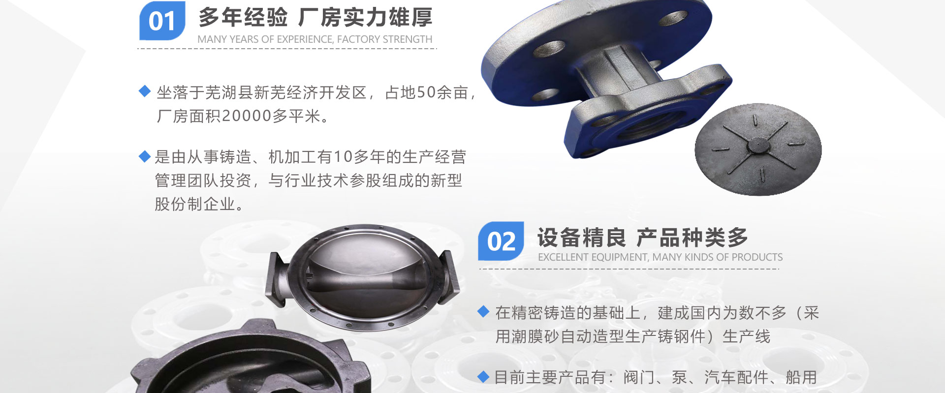 安徽偉工機械科技有限公司,坐落于安徽蕪湖新蕪經(jīng)濟開發(fā)區(qū),是一家専業(yè)從事鑄造產(chǎn)品設計、研發(fā)、生產(chǎn)、銷售于一體的企業(yè),公司為客戶的產(chǎn)品提供多樣的技術支持與設計,公司主要鑄造技術有潮模砂鑄造、硅溶膠精鑄工藝。主要產(chǎn)品有:不銹鋼閥門配件、泵閥配件、汽車配件、工業(yè)管道配件、工程機械配件、汽車配件等。材質為:低合金鋼、304、316、316L、鉻鉬鋼、哈氏合金、碳鋼、雙相鋼等。公司已先后通過ISO9001和TS16949等多種體系審核,以完備的管理手段和齊全的檢測設備滿足客戶需求,進的設備,専業(yè)的技術,嚴謹?shù)墓芾恚€(wěn)定的質量。服務客戶,鑄造未來,偉工誠摯的歡迎新老客戶共同商洽合作